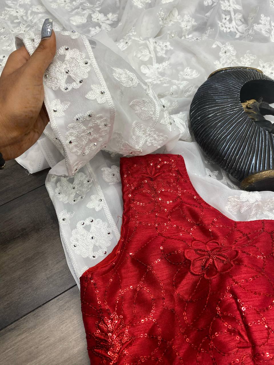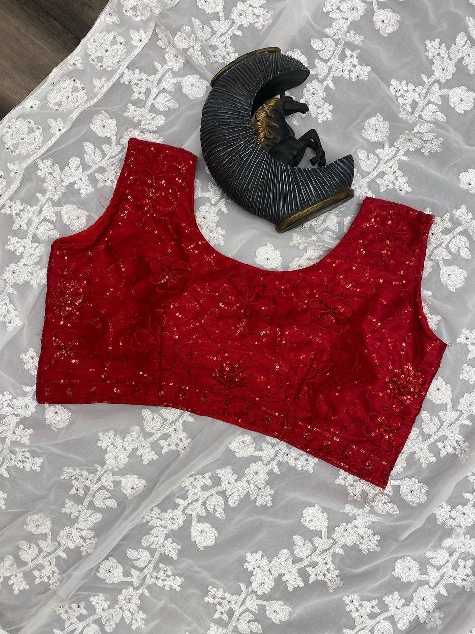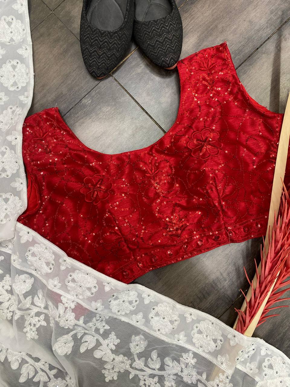*BLOUSE* : BANGLORY SATIN WITH SEQUENCE COTTON THREAD CHAINSTITCHED WORK