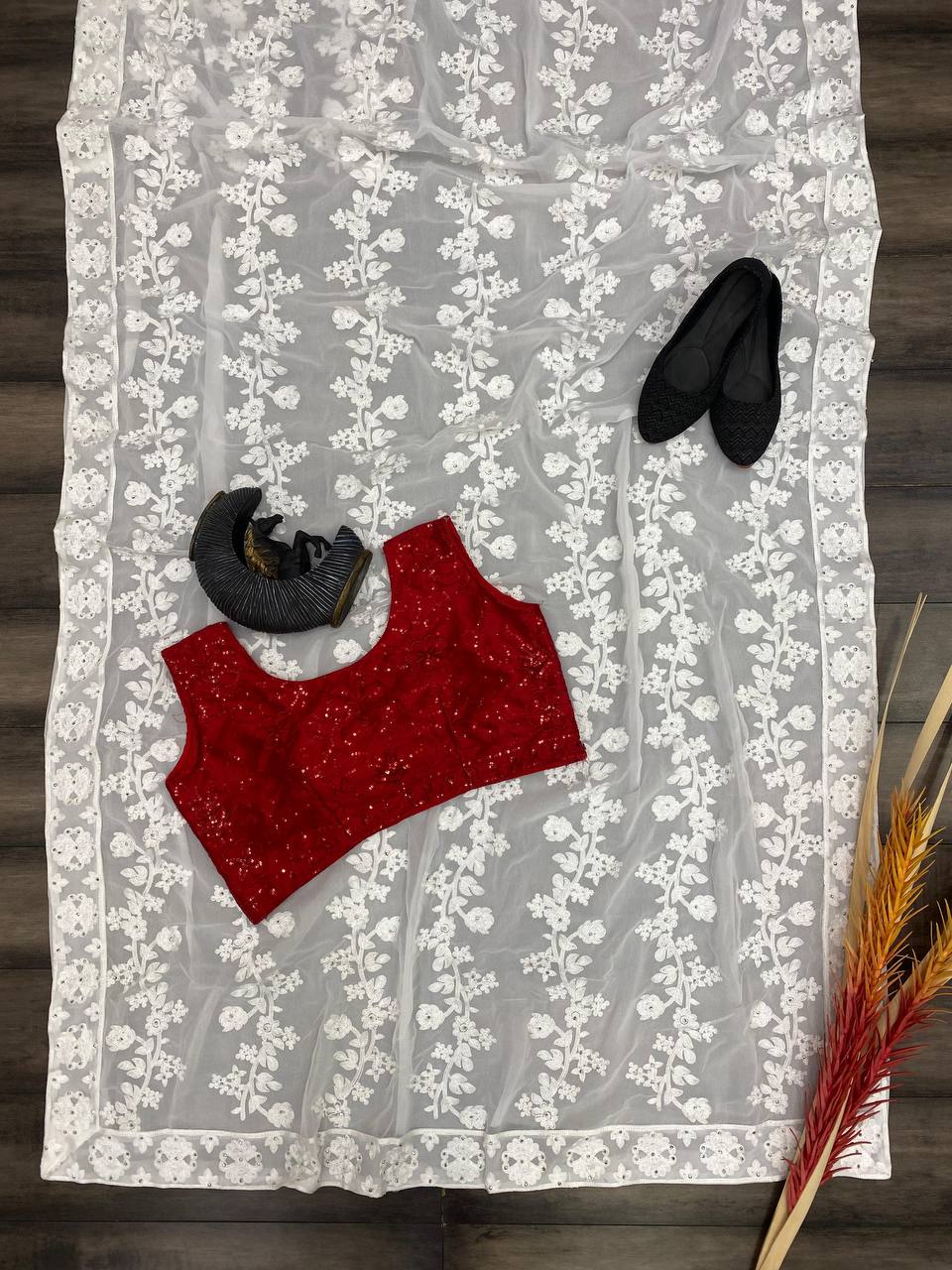 *CHAINSTITCHED WORK COMES ON ALL OVER THE SAREE*