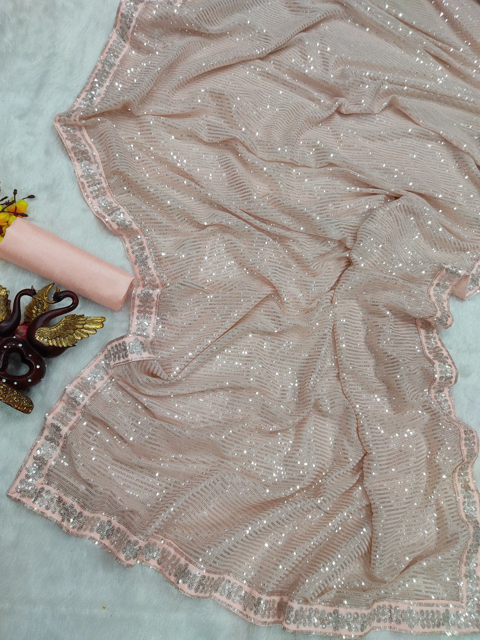 *⭕️SAREE FAB. :* Heavy Georgette *⭕️ WORK :* Beautiful Sequance Embroidery work with lace border *⭕️ BLOUSE*- Satin Banglori
