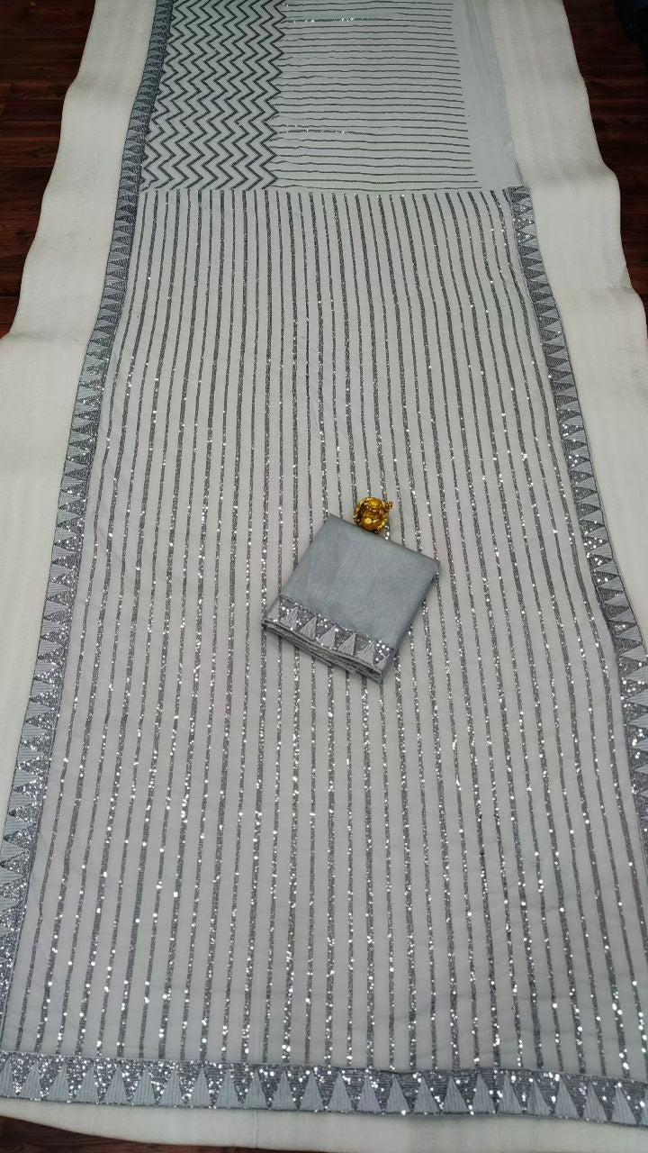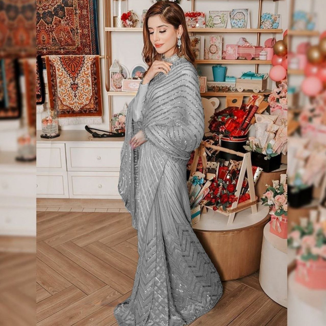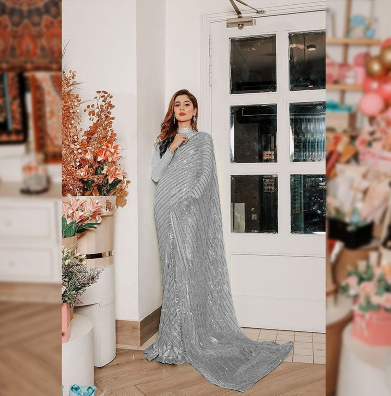 Heavy 3MM multy & Sequins Embroidery work in saree