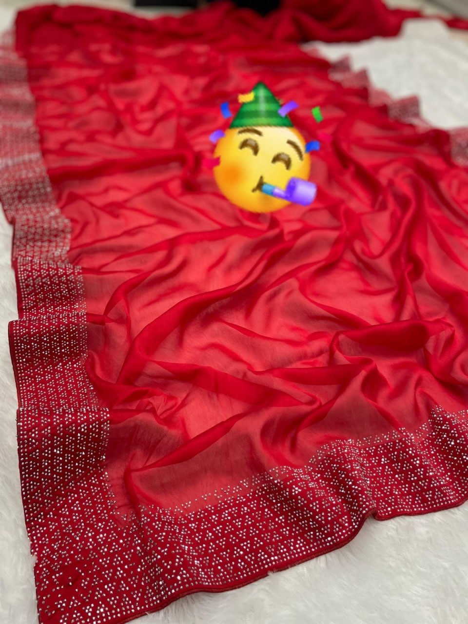 Soft Black Rangoli Silk Fabric Along With Designer Swaroski Diamond Work Along With Matching Blouse
